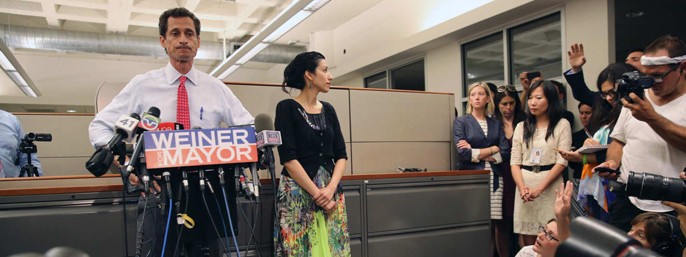 Forud for et særligt pinligt pressemøde beder Weiner hele holdet om at gå ud, indtil han står alene tilbage med sin kone Huma Abedin. De kigger på hinanden. Længe. Og så vender Weiner sig mod kameraet: ”Kan I lige gå ud?”