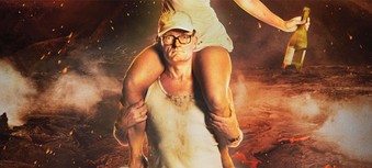 Frank Hvam viser sin tatoverede bagdel på plakaten for Klovn: The Final, der bliver den sidste rundtur med klovnerierne.