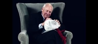 Den tidligere vicepræsident Dick Cheney signerer redskaber til waterboarding i teaseren for den britiske komikers nye tv-show.