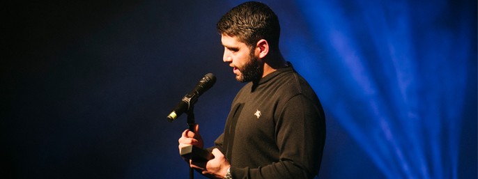 ”Jeg står i dag her – en dreng fra Mjølnerparken – og kan vise alle andre drenge, at hvis man vil, så kan man blive til noget,” siger han i sin takketale.
