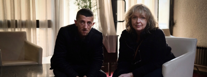 Instruktør Birgitte Stærmose sammen med Gëzim Kelmendi, som var et gadebarn, da hun lavede sin første film fra Kosovo. Nu er han blevet en voksen mand, som har besluttet sig for at forlade hjemlandet.