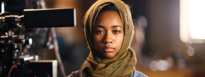 På Det Danske Filminstituts hjemmeside under ”Mangfoldighed” har man valgt at bruge et AI-genereret arkivbillede fra Adobe af en kvinde i tørklæde, hvis lyse hudfarve er blevet digitalt ændret til at fremstå som mørkere.
