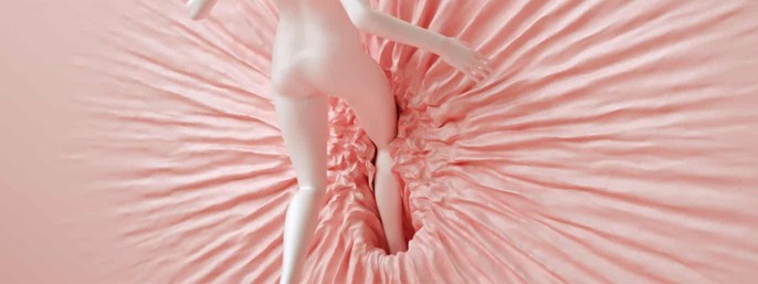 Alt er pink i de små rum i Viborgs gamle museum, og det er videoværkerne, der pryder dem, også. Midt i det blanke, sterile univers boltrer nøgne, udtryksløse kroppe sig og opløses i en slags afromantisering af mennesket, der bliver reduceret – eller opgraderet – til materiale.