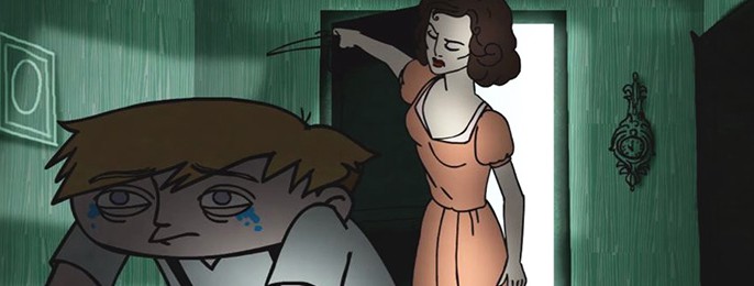 Den animerede billedside i Et børnehjem er holdt i ravmørke sepiafarver, der er tro mod drengens åbenbaring af sin dystre fortid.