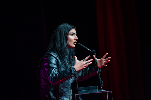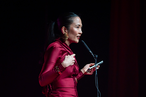 Skuespiller, instruktør, aktivist og medlem af Ekkos diversitetsjury, Sandra Yi Sencindiver, holder et brag af en brandtale for mangfoldighed i filmbranchen, inden hun uddeler Diversitet Prisen.