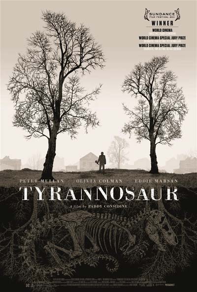 Den tegnede plakat for Paddy Considines barske engelske drama Tyrannosaur er et studie i fortællende og visuelt betagende plakatkunst, man får lyst til at fordybe sig i.
