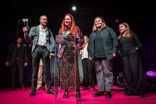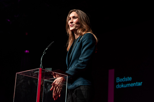 Rikke Nørgaard og hendes hold modtager prisen for bedste dokumentar med Once Upon a Time on Twitch om twitch-streameren SoWeQ. Han kom selv på scenen med hele sin online-følgerskare virtuelt i hånden.