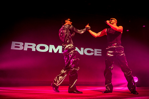 ”Godt at se dig brormand,” synger de to værter. De indleder showet med en crazy catchy popsang, som gør grin med de akavede branchebekendtskaber, der ikke altid er på bromance-niveau.