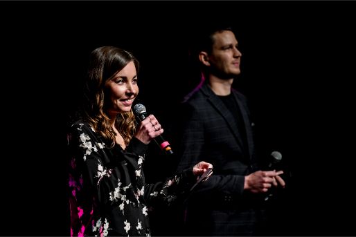 To jurymedlemmer – sidste års vinder Marijana Jankovic og Filminstituttets konsulent Silje Riise Næss – går på scenen for at overrække Shortlist Prisen til juryens favorit blandt årets mest populære film på Ekko Shortlist.