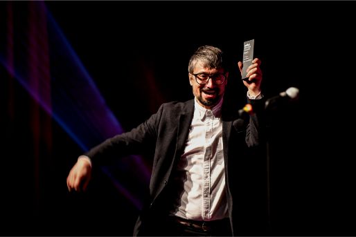 En ekstatisk Andrias Høgenni tager imod statuetten for bedste fiktion til Ikki illa meint, der foregår på færøsk. ”Det er enormt dejligt at høre dig udtale titlen,” siger Høgenni til Thomas Vinterberg og tilføjer, at han var nitten år, før han så en spillefilm med sit eget modersmål.