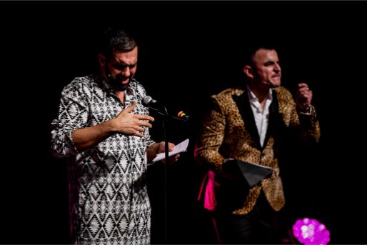 Aftenens veloplagte værter, skuespillerne Zaki Youssef og Besir Zeciri, spiddede til stor morskab sig selv og den danske filmbranche.