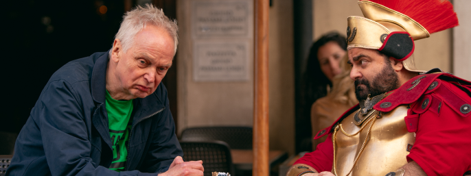 Kristian Halken spiller Kristoffer (tv.), der støder ind i ægteskabelige problemer på en ferie i Rom, som er den bedst sælgende danske film i 2024.