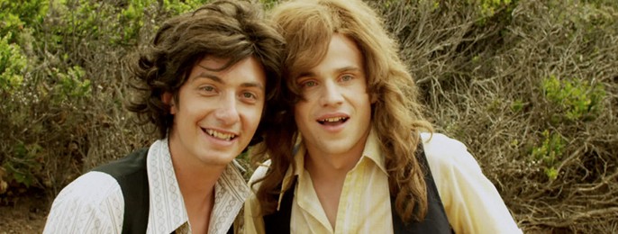 Iført parykker og stramtsiddende bukser tager parret os med på en koger af en roadtrip til Californien i 1971, hvor de elskede brødre kommer op at køre med to amerikanske hippiepiger (Emma Bell og Hailey Boyle) i et gult folkevognsrugbrød.