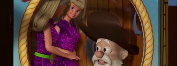 I den pågældende scene – se den efter artiklen – indlader guldgraveren Stinky Pete sig med to barbiedukker. Han tager fat i armen på den ene, kærtegner den og siger, at han er sikker på, at de kan få en rolle i Toy Story 3.