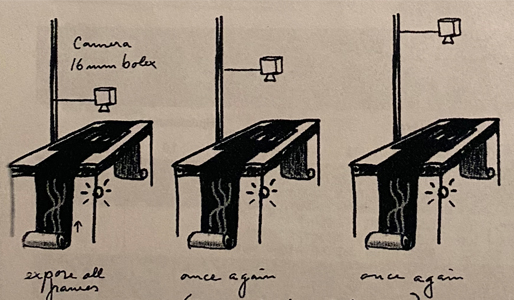Sådan en rulle film kom Marcussen en dag til at lukke op. Han troede, at filmen var færdigbehandlet, men tog fejl med det resultat, at de ikke-fremkaldte billeder blev totalt absorberet af lyset.
