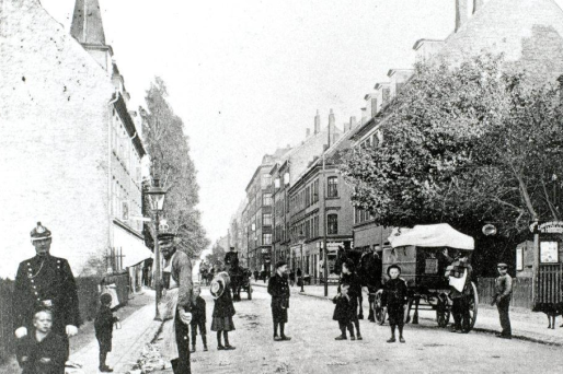 Den virkelige Dagmar Overbyes slikbutik lå på Holmbladsgade på Amager, der så sådan her ud i starten af 1900-tallet.