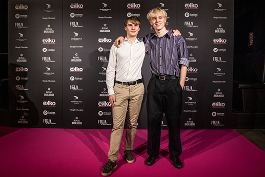 Skuespilleren Rasmus Hammerich (th.) medvirker i mange kortfilm på Ekko Shortlist, deriblandt flere af de nominerede ved årets prisfest. Han indtager den røde løber i cowboybukser sammen med en ven.