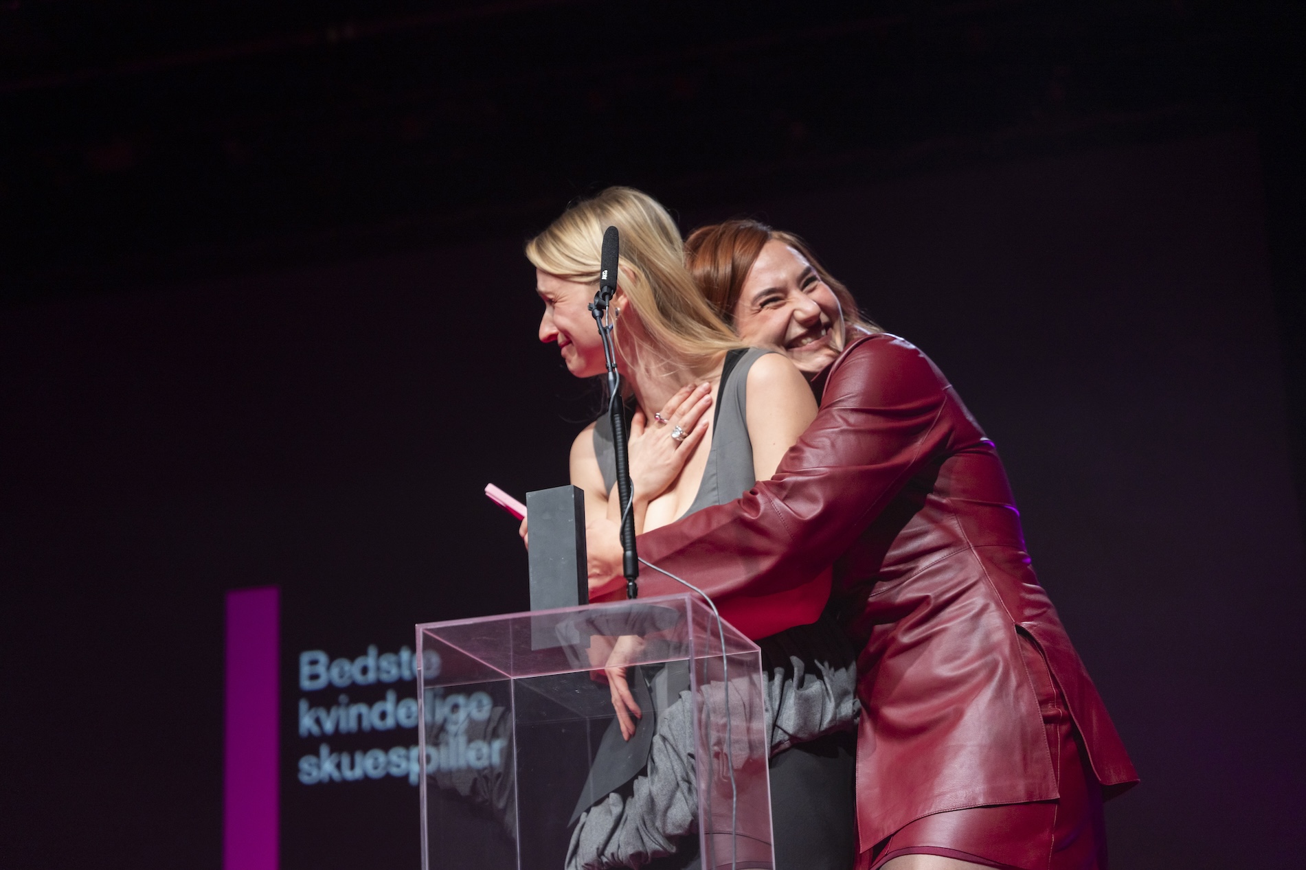Skuespilleren Clara Dessau er lige ved at afsløre vinderen af bedste kvindelige skuespiller for tidligt, men Legenden-kollegaen Maria Cordsen når i sidste øjeblik at stoppe hende og bevare overraskelsen.