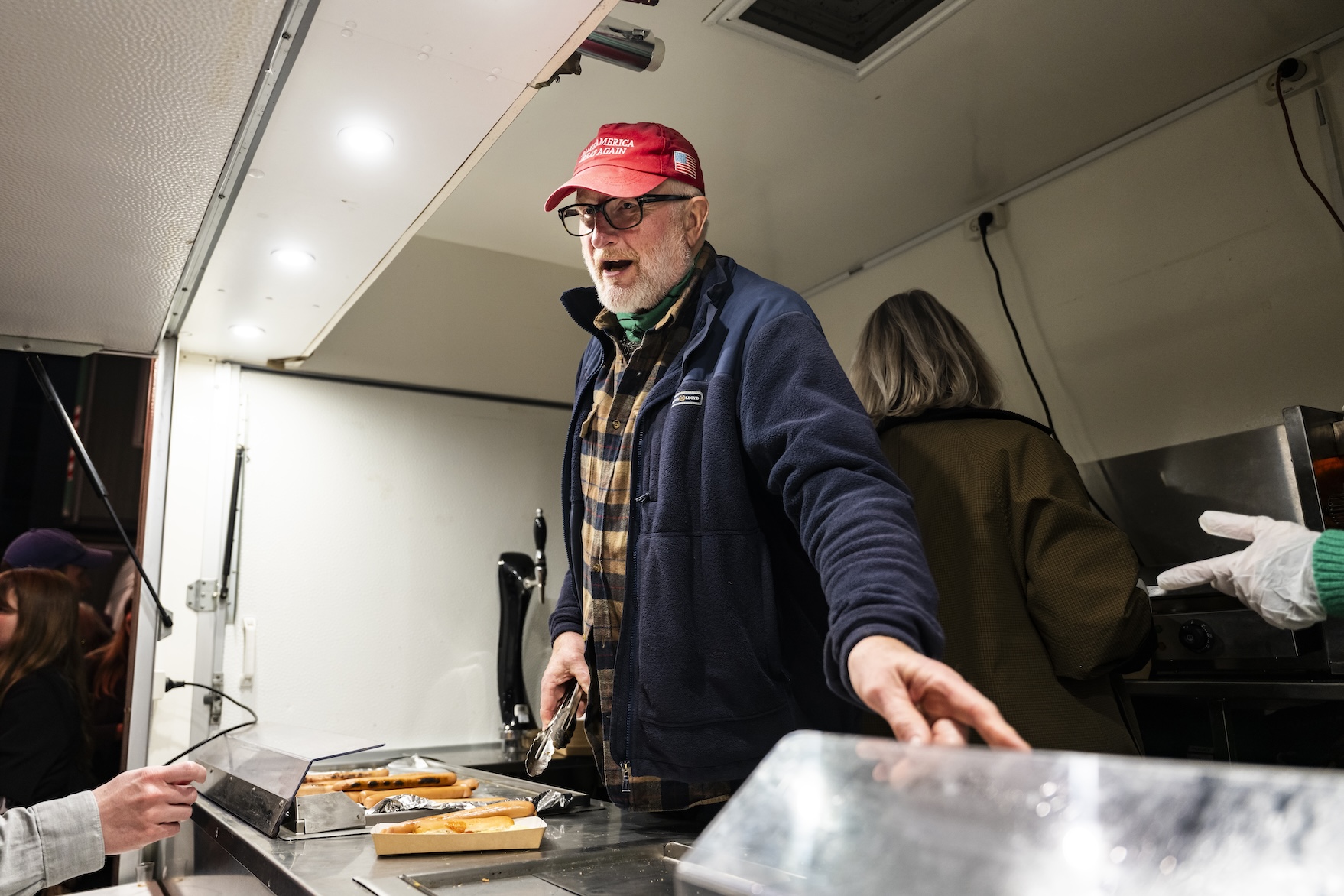 Dansk films evige provokatør, producenten Peter Aalbæk Jensen, optræder med MAGA-kasket, mens han deler pølser ud til de sultne festende efter showet. Med et generøst sponsorat var han i øvrigt med til at redde Diversitet Prisen.