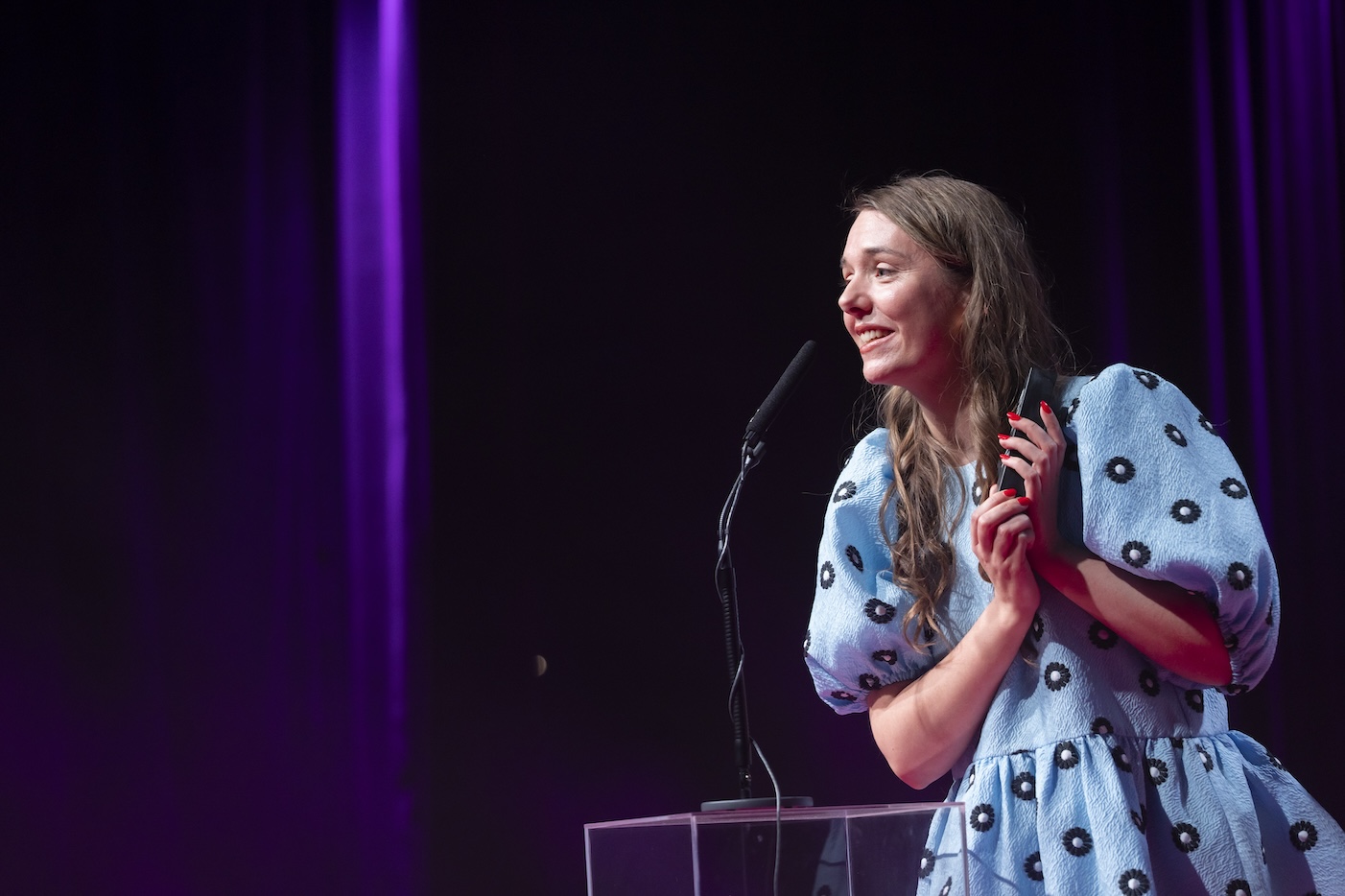 ”Mine film har været nomineret mange gange til Ekko Shortlist Awards. Jeg har vundet én gang – og tabt fjorten gange,” siger Det andet offer-instruktøren Zinnini Elkington i sin suveræne tale, hvor hun med et glimt i øjet rådede filmtalenterne til at være stædige og have dårlig hukommelse.