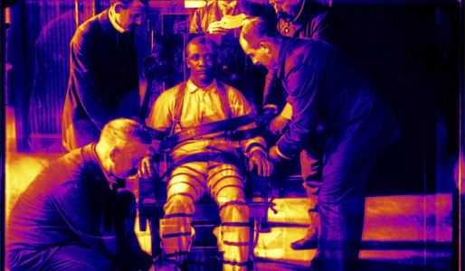 Endn et billede fra Stahos lancering af sin film: En afroamerikaner i den elektriske stol i USA.