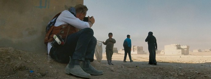 Dermed ikke sagt, at Krigsfotografen er uden krig og konflikt. Flere gange er Jan og det lille filmhold – bestående af den erfarne fotograf Henrik Bo Ipsen og instruktøren selv – under heftig beskydning under slagene i Mosul i det nordlige Irak.