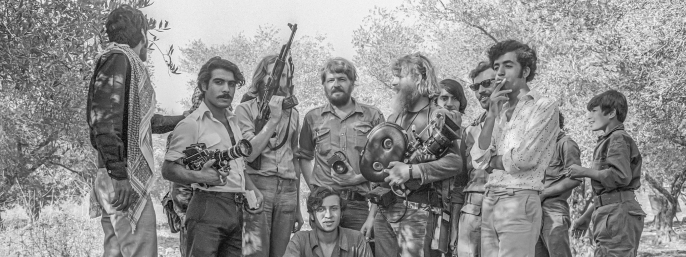 Det var en fordel for Nils Vest (bagerst i midten) og hans skæggede filmhold, at de ikke lignede slikkede tv-folk. Palæstinenserne kaldte dem for ”cubanerne”.
