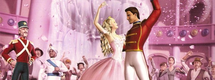 I fortællingen træder vi sammen med Barbie ind i en pastelfarvet fantasiverden, der er som spundet direkte ud af 1950’erne. Her må den magiske nøddeknækker redde hende igen og igen fra den onde musekonge, mens hun selv står yndefuldt og venligt smilende ved hans side.