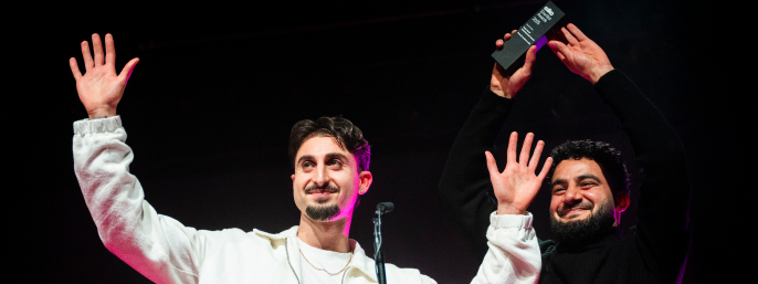 Rand Jamal og Mohammed ”Muddi” Osman bryder ud i jubel, da de – til deres store overraskelse – vinder den femte Diversitet Pris ved Ekko Shortlist Awards.