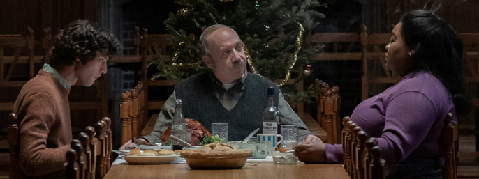 Den danske fotograf Eigil Bryld fanger den særlige stemning ved middagsbordet, hvor universitets udskud, spillet af Dominic Sessa, Paul Giamatti og Da’Vine Joy Randolph, holder jul sammen.