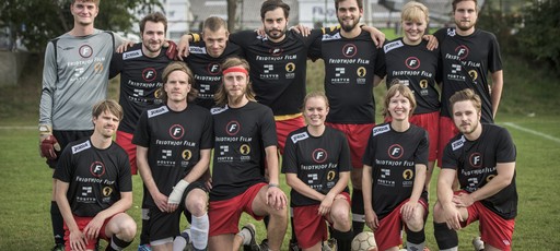 Zentropa og Det Danske Filminstitut holder et minuts stilhed til minde om det skærpede tilsyn mod Zentropa, som Filminstituttet i år har lagt i graven. Målmand Mikkel Maltha holder mindet i hævd og spiller i sidste års trøje med skriften ”Under skærpet tilsyn”.