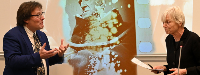 Ordet gives til doktoranden, som fremhæver sin kildenærhed ved at have medbragt en stump fysisk 35 mm-film fra en kopi af Jeanne d’Arcs lidelse og død. Han tilslutter sig et citat fra amerikanske David Bordwell om, at filmhistorie er en empirisk disciplin.
