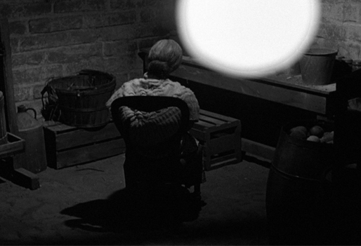 I Hitchcocks psykologiske, vertikale gyser byder kælderscenen på en makaber sygeliggørelse. Lila ser Normans mor sidde som et skelet i en stol.