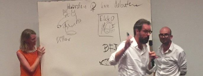 Han forklarede yderst pædagogisk med ord og tegninger, hvordan kvinder kan debutere i den danske filmbranche i fremtiden. Som han så det, har de tre muligheder: