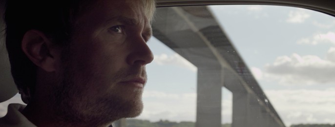 Stefan Kjær Olsens Blodbrødre indledes med et billede af en taxa, der kører gennem et billedskønt jysk landskab med Vejlefjordbroen i baggrunden.