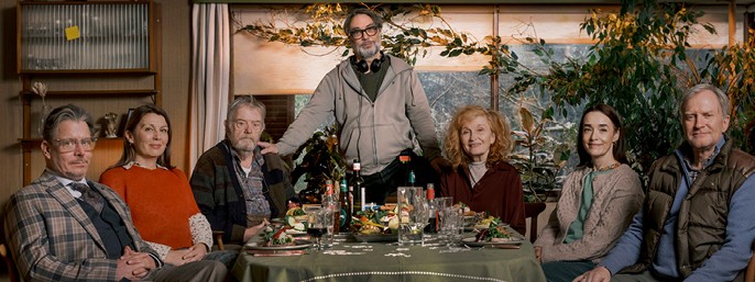 Skuespillerne Anders W. Berthelsen, Rikke Bilde, Peter Schrøder, Bodil Jørgensen, Maria Rossing og Ulrich Thomsen omringer instruktøren Henrik Ruben Genz.