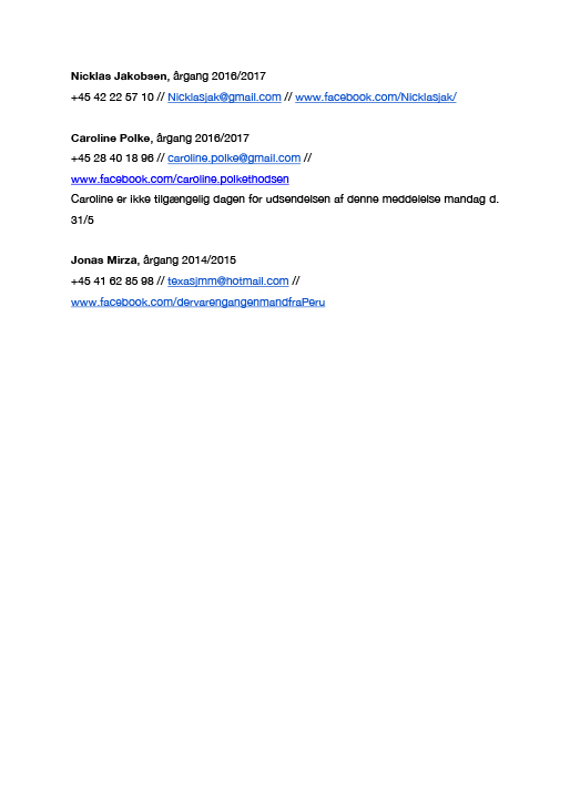 I pressemeddelelsen indkalder Caroline Polke, Nicklas Jakobsen og Jonas Mirza alle tidligere, nuværende og fremtidige elever på European Film College til et videomøde på søndag kl. 14.