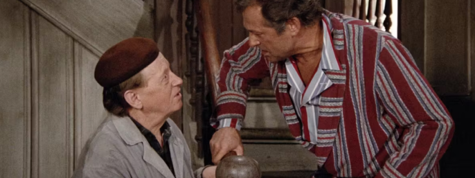 Fejden om trappekuglen mellem Meyer (Arthur Jensen) og Olsen (Poul Reichhardt) kan snart ses i knivskarpe farver med nyrestaureringen af Huset på Christianshavn.