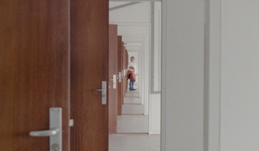 Et af de billeder, der betyder mest for mig i filmen, er det med de mange åbne, brune trædøre – omkranset af hvide vægge og et lyst gulv.