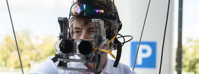 ”Ja, når kameraet sidder oven på hovedet, og man kigger ned, så er det ikke sådan, man ser sin krop. Man kan se, at der er noget galt. Men filmet fra munden svarer det til, når man ser med øjnene.”