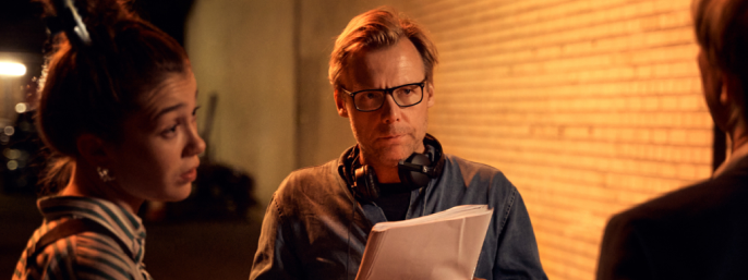 Mikael Wulff har travlt med at instruere Thit Aaberg og Brian Lykke i spillefilmen Højst besynderlige steder, som kun havde seksten optagedage.