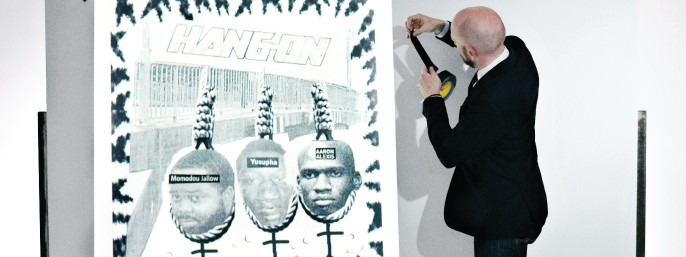 ”Et af de mest omdiskuterede Dan Park-værker er det, der hedder Hang-On Afrofobians og viser tre navngivne afrosvenskere, der hænger i galgeløkker. Det er et både komplekst og flertydigt værk, men man bliver nødt til at kende forhistorien.”