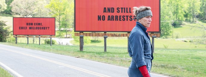 Ligesom i McDonaghs erindringer bærer skiltene også i filmen et dystert budskab. Og vi ser, at instruktøren efter sine overvejelser må have forestillet sig en kvindelig afsender.