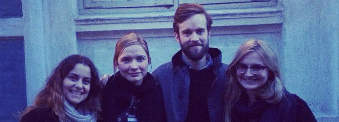 Ekko har samlet det meste af holdet bag filmen i en kælder hos Nimbus Film på Frederiksberg. Charlotte Brodthagen, Sara Samsøe, Neel Rønholt og Jens Sætter-Lassen – og så hunden Amiga.