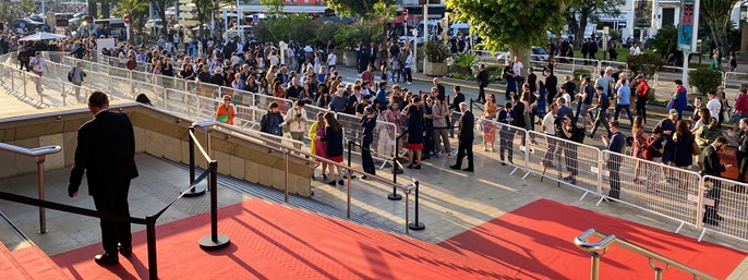 Selv om Cannes-festivalen har indført et digitalt billetsystem, er det ikke slut med at stå i kø. Nu gør man det bare både i virkeligheden og på internettet.