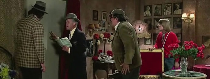 Blandt Erik Ballings tretten film om Olsen-bandens bedrifter (1968-81, suppleret med en fjortende i 1998) huskes nummer otte især for sit højdepunkt: det vittige kup i Det Kongelige Teater.