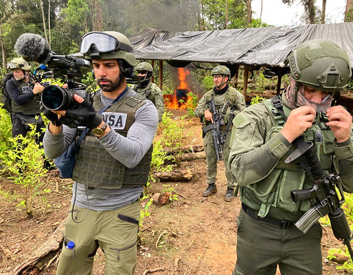 Derfor bestod optagelserne både af lange dage med den colombianske anti-narkostyrke og mere hemmelige sekvenser, hvor den lille gruppe er helt alene med kokabønder, narkosmuglere og sågar en maskeret lejemorder.