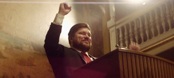 Mød Rasmus Bjerg og oplev den folkekære skuespiller i en overrumplende rolle som populistisk politiker i Danmarks sønner.