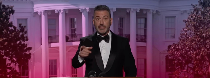 I Jimmy Kimmel Live! i torsdags lavede Jimmy Kimmel en sketch, hvor han lod, som om han selv var med til den traditionsrige White House Correspondents’ Dinner og bemærkede, at Melania Trump havde ”en kommende enkes glød”.