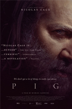 Skuespilleren prøver dog noget nyt som mere afdæmpet og mystisk i Pig. Her spiller han en utraditionel frelserfigur, der får usandsynligt mange tæsk i jagten på at finde sin bortførte trøffelgris.